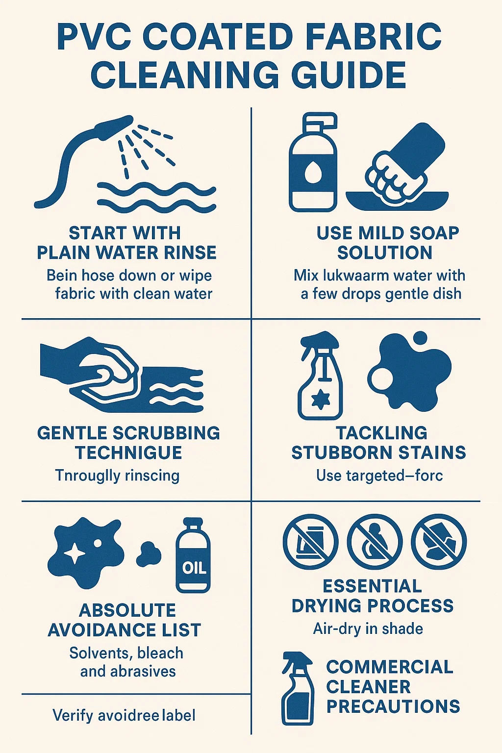 Hier finden Sie eine praktische Anleitung zur Reinigung PVC-beschichtete Stoffe basierend auf gemeinsamer Erfahrung und materieller Sorgfalt: