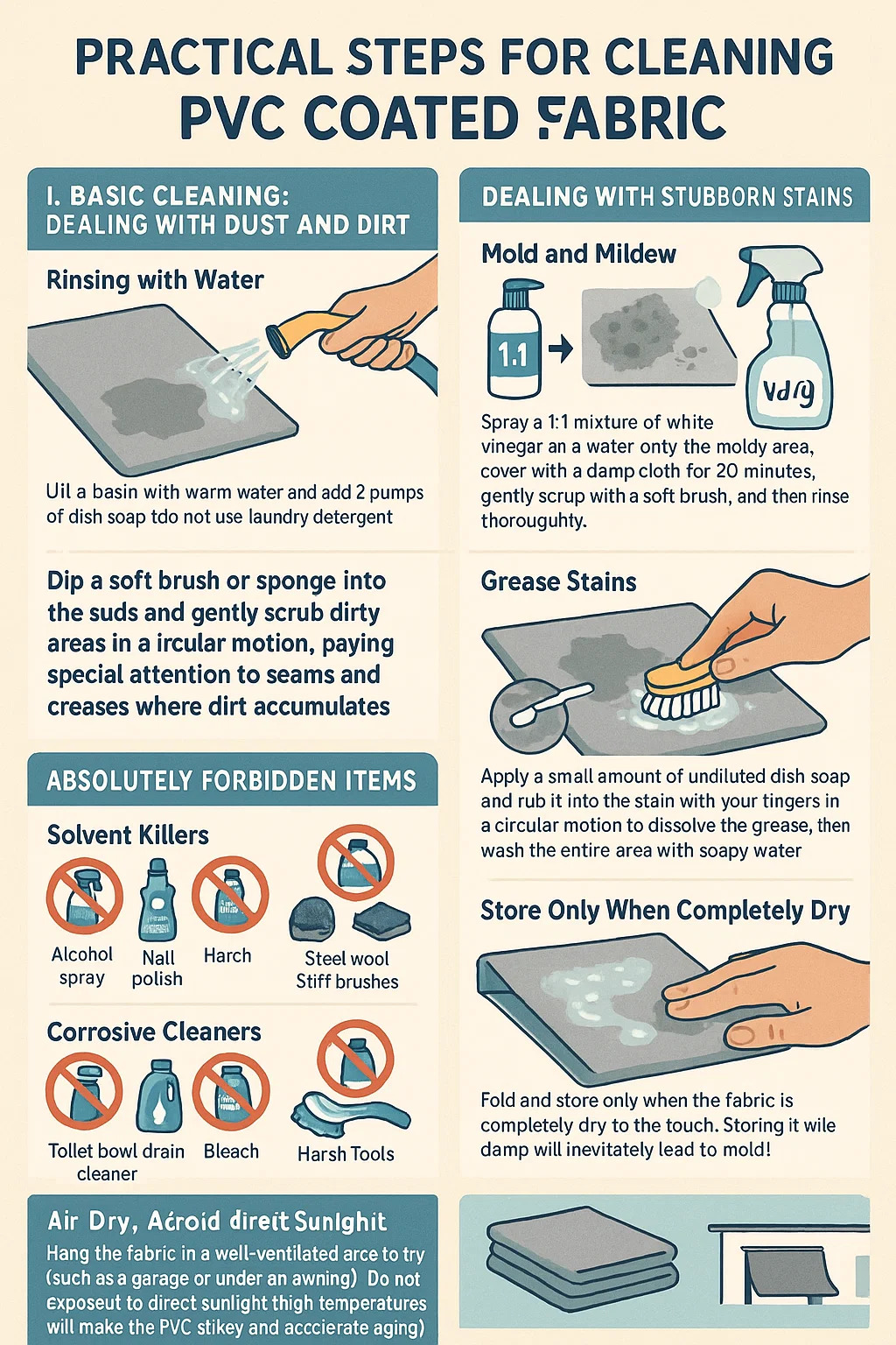 Hier finden Sie praktische Schritte zur Reinigung PVC-beschichteter Stoff :