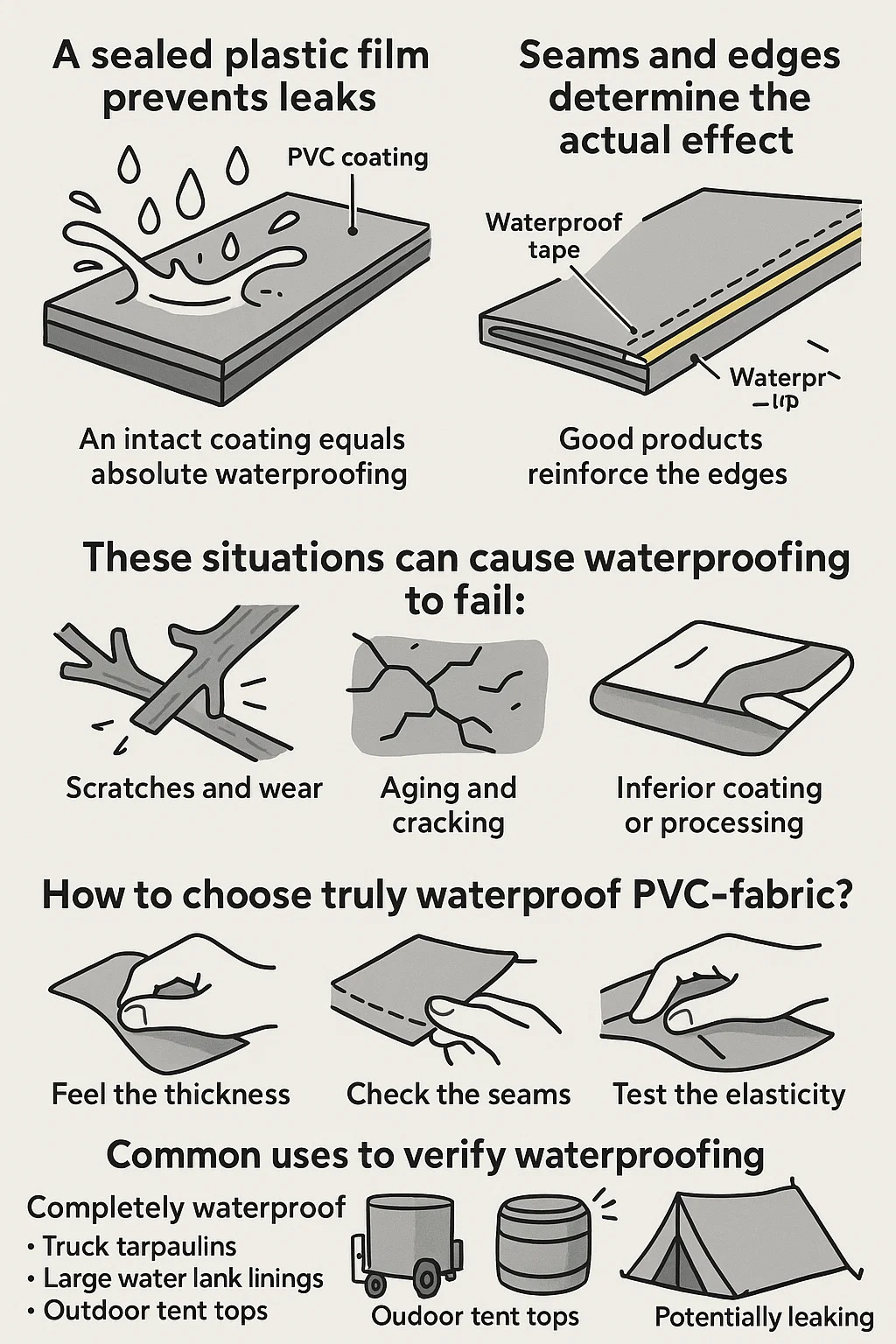 Hier finden Sie eine Erklärung der wasserdichten Eigenschaften von PVC-beschichtetem Stoff: