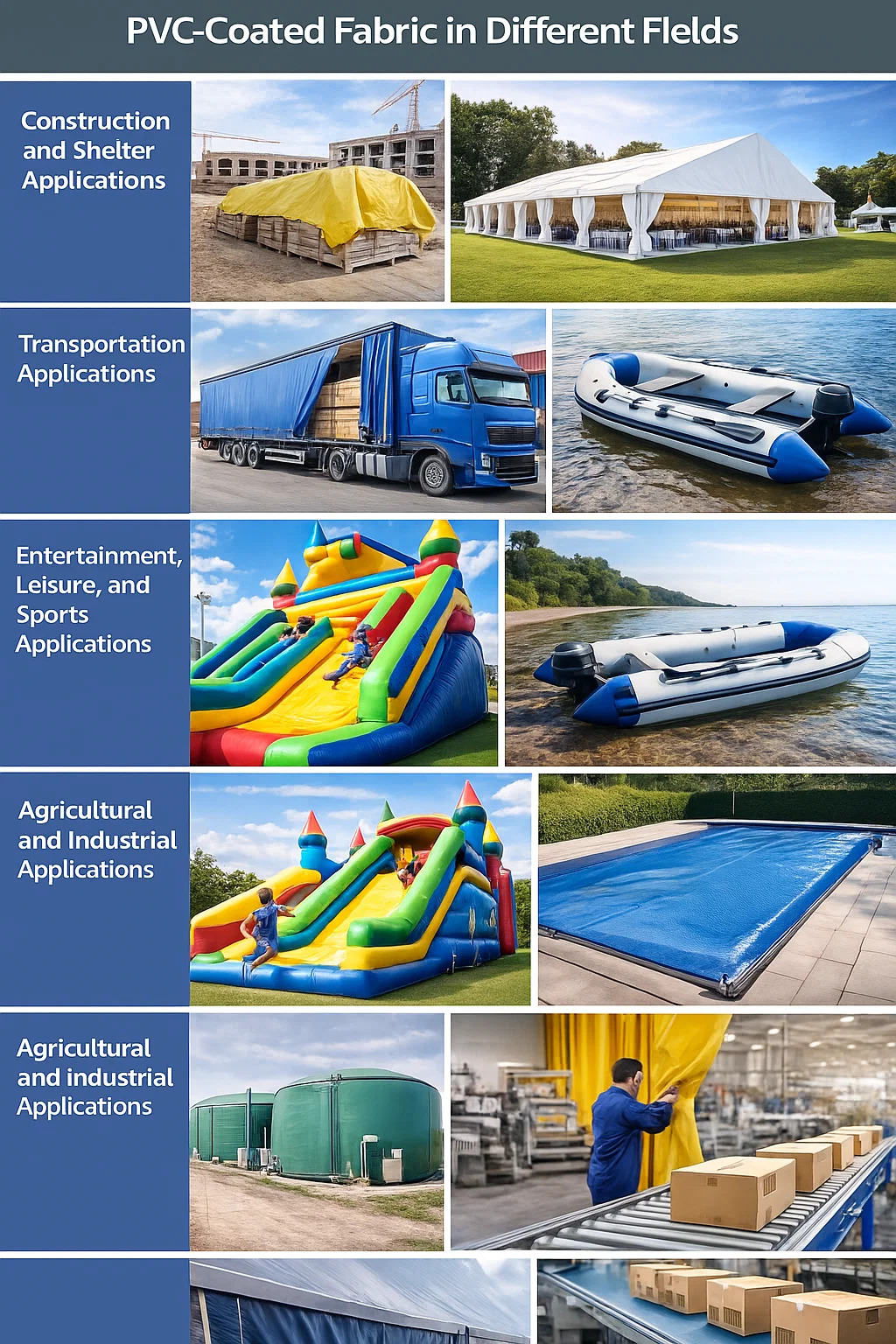 Hier sind einige der Hauptanwendungen von PVC-beschichtetem Gewebe in verschiedenen Bereichen: